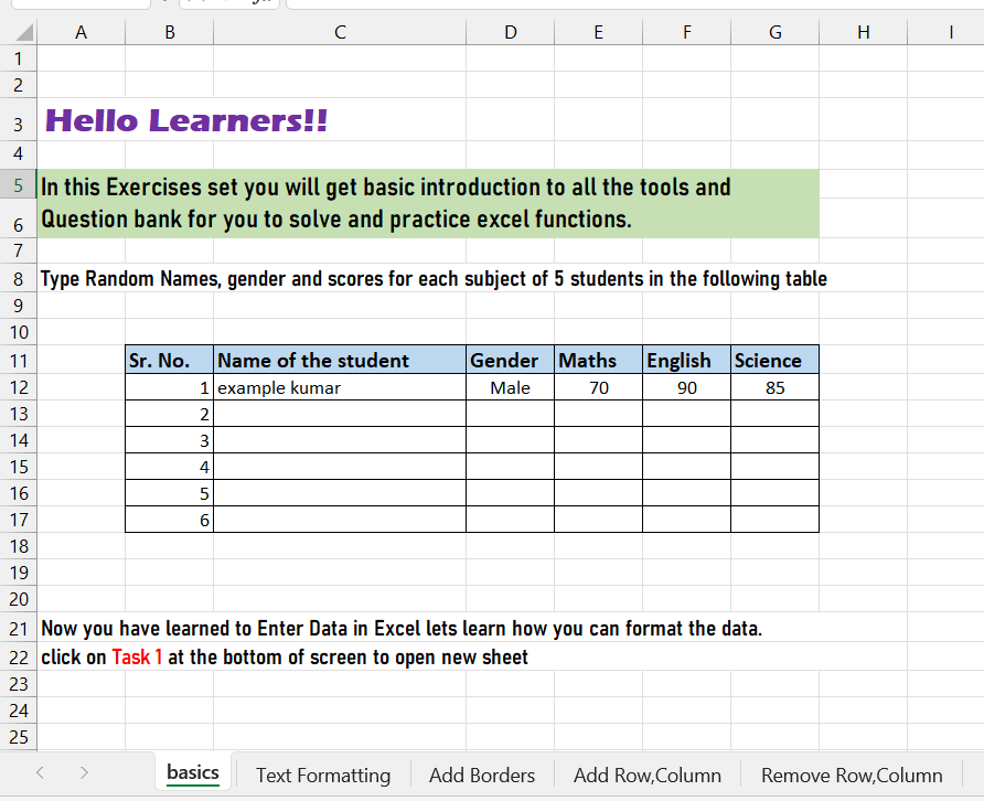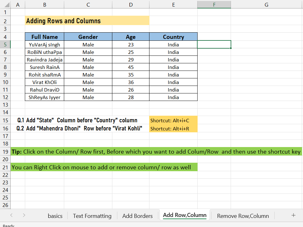 Stage 1: Text formatting, borders, Insert/Remove row/column and shortcuts